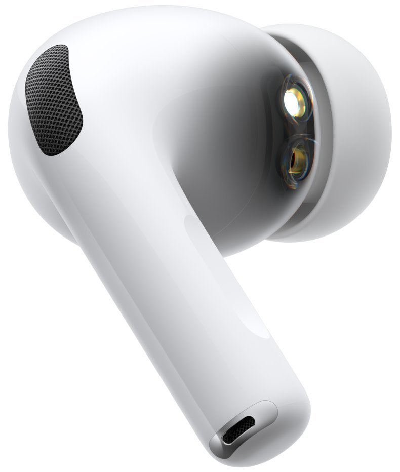 Třetí generace AirPods Pro přináší až 2× účinnější aktivní potlačování hluku oproti předchozí generaci díky pokročilému čipu Apple H2 a vylepšeným mikrofonům s extrémně nízkou hladinou šumu. Nová víceportová akustická architektura se speciálním budičem Apple zajišťuje výjimečnou kvalitu zvuku s hlubokými basy a průzračnými vokály.