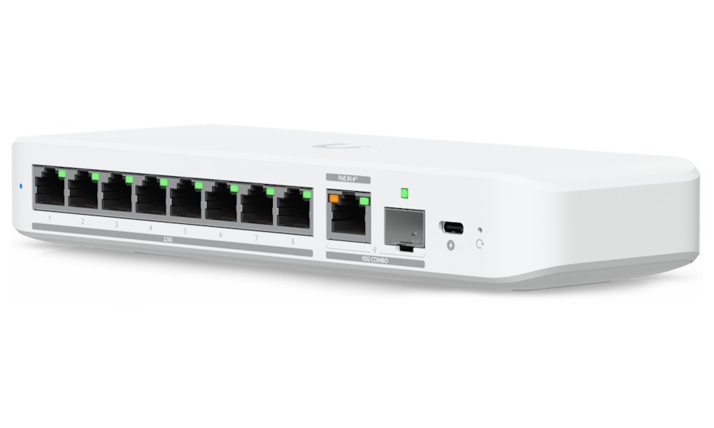 Flexibilní switch nabízející osm 2,5 GbE RJ-45 portů a jeden kombinovaný 10G RJ-45/SFP+ pro uplink. Jedná se o L2 switch s celkovou kapacitou 60 Gbps a rychlostí směrování 44,64 Mpps. Switch lze napájet buď přes USB-C konektor, nebo pomocí PoE+.