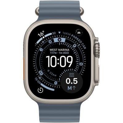 Chytré hodinky, 49mm, LTE, snímač tepové frekvence, EKG, teploměr, hloubkoměr, siréna, přírodní titanové pouzdro, ocelově modrý oceánský řemínek