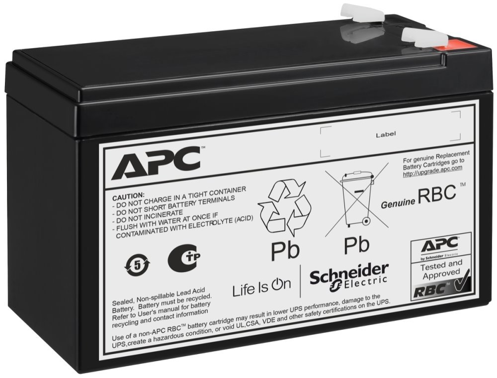 APC náhradní bateriový článek. Bezúdržbový olověný zatavený akumulátor se suspendovaným elektrolytem.