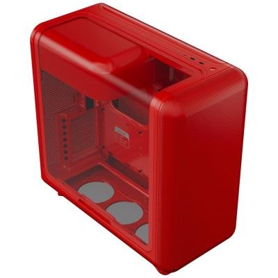 Skříň, Middle tower, bez zdroje, ATX, 1× USB-C, 2× USB 3.0, 3,5mm combo jack, micro-mesh panel, laminované akustické sklo, červená