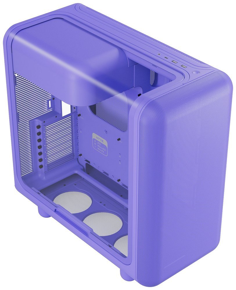 Skříň, Middle tower, bez zdroje, ATX, 1× USB-C, 2× USB 3.0, 3,5mm combo jack, micro-mesh panel, laminované akustické sklo, fialová