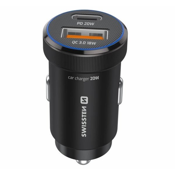 Autonabíječka SWISSTEN kombinuje dva výkonné porty – USB-C s technologií PD 3.0 poskytující až 20 W a USB s protokolem QC 3.0 s výkonem až 18 W. Díky tomu můžete rychle nabíjet telefony, tablety i další elektroniku přímo během jízdy. Zařízení podporuje vstupní napětí 12 V i 24 V, což umožňuje použití v osobních i užitkových vozidlech.