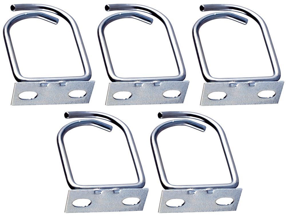 Háček je vyroben z pozinkované oceli, která zajišťuje dlouhou životnost a odolnost proti korozi. Dodává se v praktických sadách po 5 kusech kompletně s upevňovacím příslušenstvím pro snadnou a rychlou instalaci.