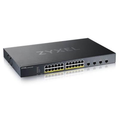 Switch, 24× GbE RJ-45, 4× 10GbE SFP+, 24× PoE+ (802.3at), Lite-L3, Smart Managed, VLAN, QoS, statický routing, hybrid mode, Nebula cloud nebo standalone, 128Gbps, PoE budget 375W, napájení AC 100–240V