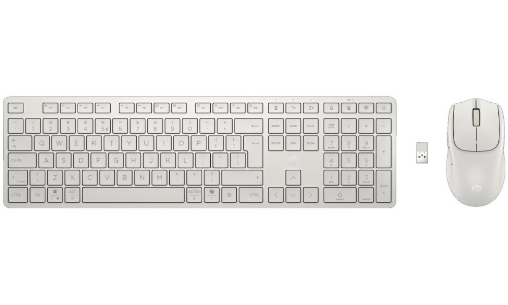 Klávesnice disponuje 22 programovatelnými klávesami prostřednictvím softwaru HP Accessory Center, včetně dedikovaného tlačítka Copilot pro rychlý přístup k AI asistenci. Plnohodnotné rozložení s nízkoprofilovými klávesami (zdvih 2,0 mm) ve tvaru misky zlepšuje přesnost psaní a komfort při dlouhodobém používání. Myš s 5 tlačítky (4 programovatelná) a senzorem pro různé povrchy nabízí rozlišení až 4000 DPI s jmenovitou hodnotou 1200 DPI.