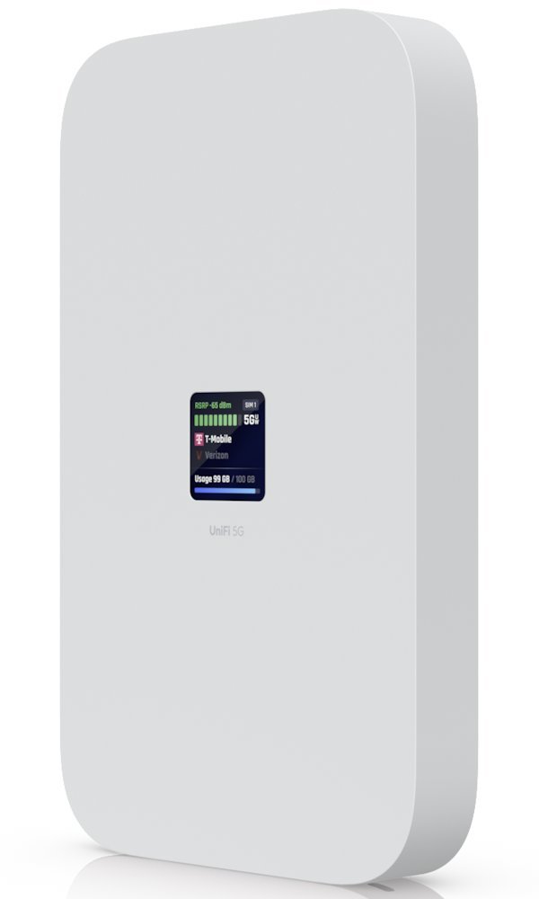 Router, mobilní, 5G, 4G/LTE, 3G, 3,4Gbps, dual SIM/eSIM, 2,5GbE RJ-45, PoE, 1,3" dotykový displej, UniFi Network, IK04, bílo-černý