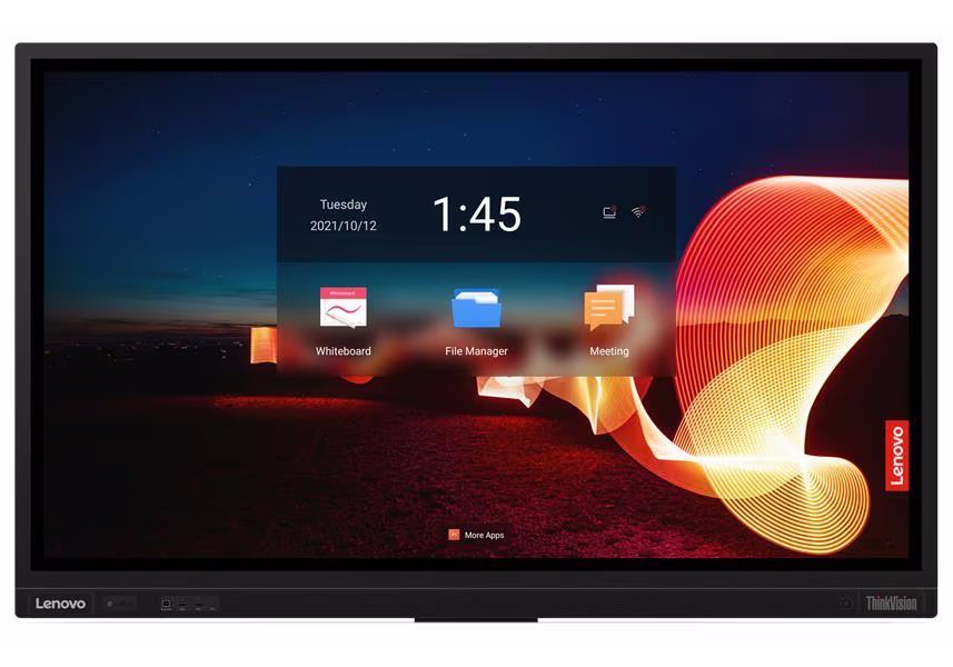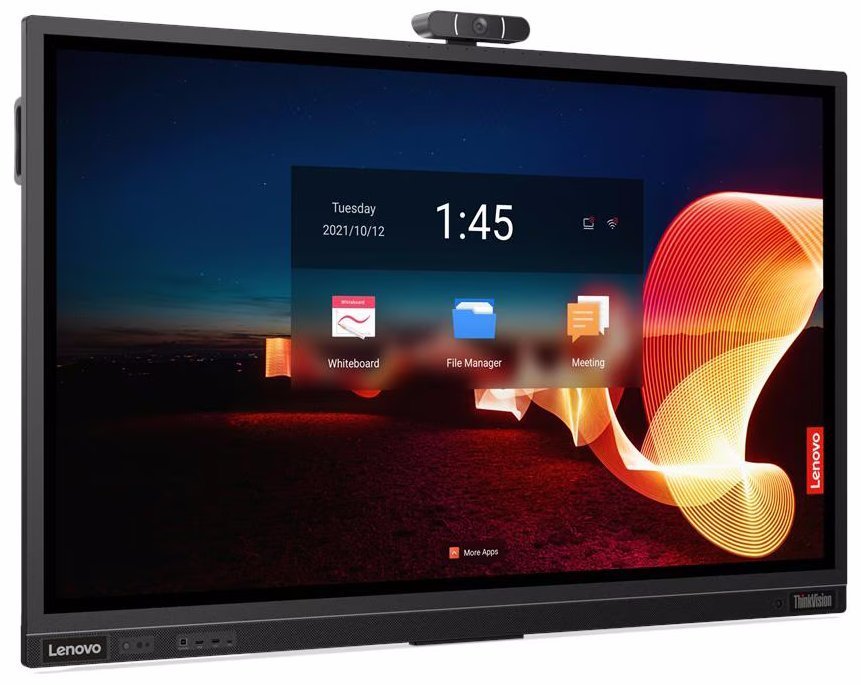 LED displej, dotykový, 65", 4K Ultra HD 3840×2160, IPS, 8ms, 400cd/m2, 5× HDMI, DisplayPort, VGA, 4× USB, 2× USB-C, 2× LAN, repro, kamera, Android 9, ThinkPlus MD80
