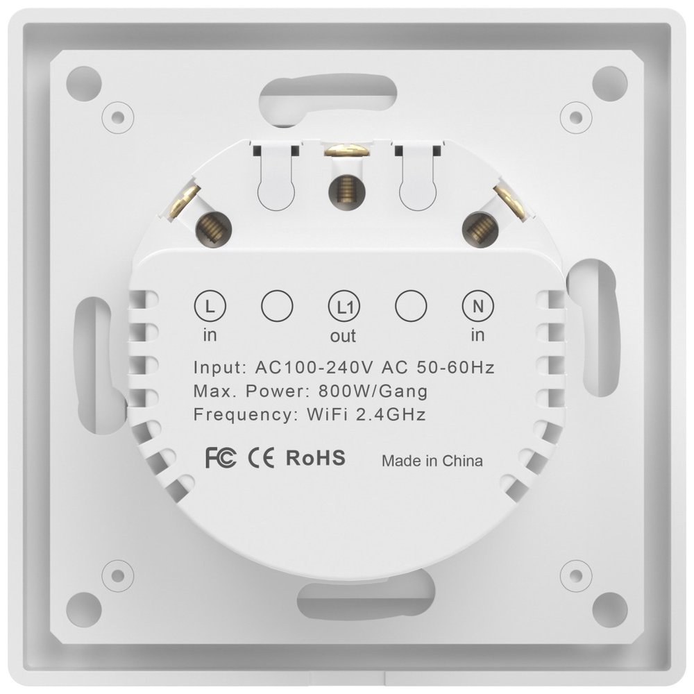 Vypínač, pro chytrý dům, 1tlačítkový, Zigbee 3.0, Tuya, 230V, 800W, 10A, dotykový/aplikace/hlasové ovládání, repeater, bílý