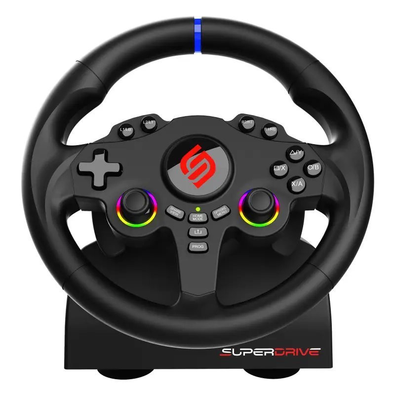 Volant je vybaven řadicími pádly pro okamžitou změnu rychlostního stupně a sadou dvou analogových pedálů (plyn a brzda), které poskytují přesnou kontrolu nad akcelerací a brzděním. Duální joysticky rozšiřují možnosti ovládání a umožňují přizpůsobení různým herním stylům, včetně simulačních her jako Farming Simulator nebo GTA. Odnímatelné přísavky zajišťují stabilní uchycení na stole, pracovní desce nebo v kokpitu.