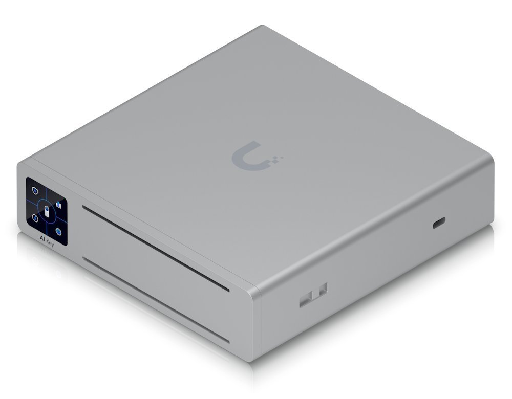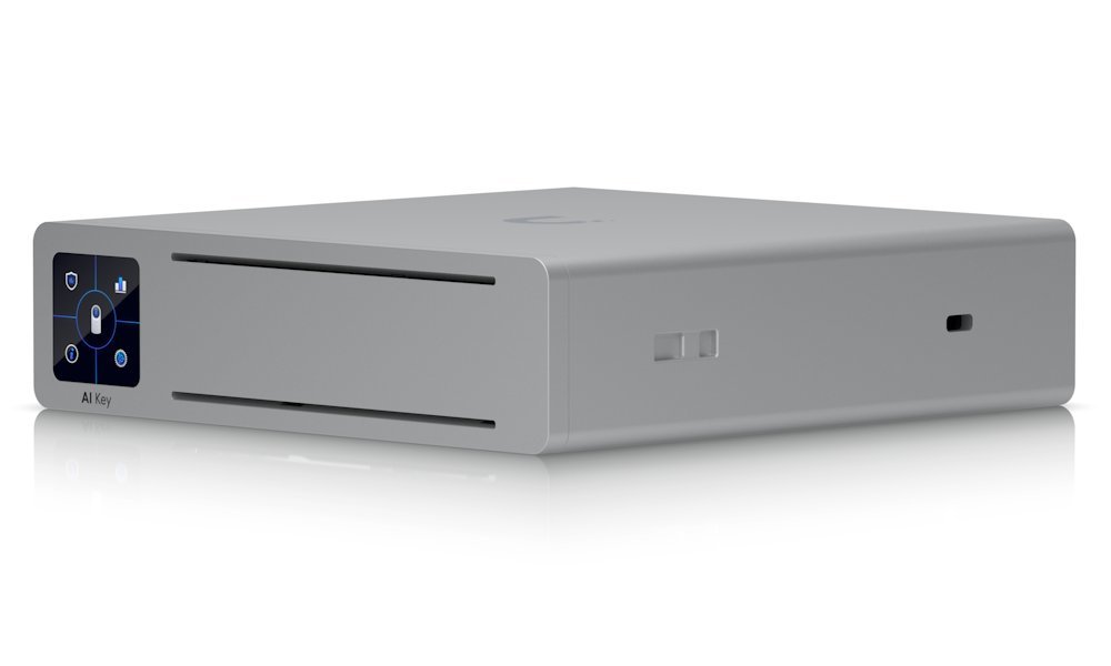 Kompaktní hliníkové provedení o rozměrech 134,2 × 131,2 × 33,7 mm obsahuje výkonný procesor Arm® Cortex®-A78AE v8.2, 16 GB LPDDR5 paměti a 256GB SSD úložiště. Zařízení se napájí pomocí PoE++ (50–57 V) s maximální spotřebou 45 W a disponuje 1,3" dotykovým displejem pro základní ovládání. AI Key je kompatibilní se všemi UniFi Protect kamerami podporujícími smart detekce včetně sérií G4, G5, G6 a AI.
