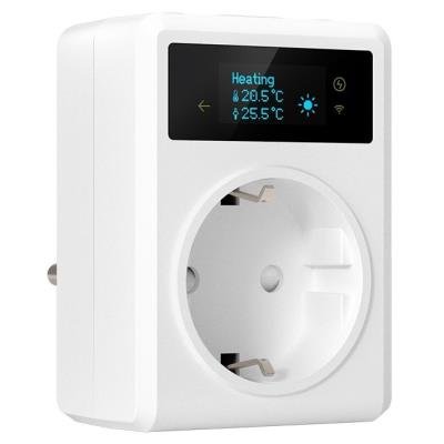 Chytrá Wi-Fi zásuvka s integrovaným teploměrem pro automatické ovládání spotřebičů podle naměřené teploty.